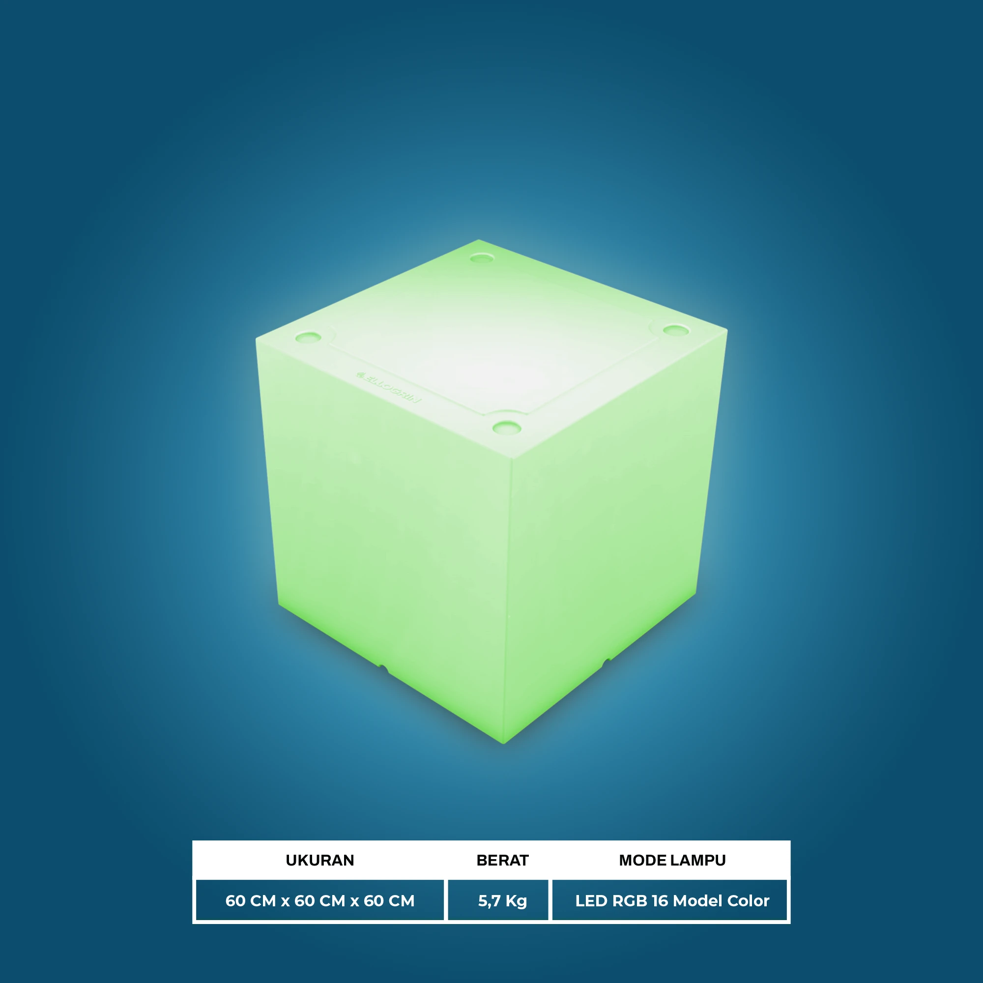 Cube Seat merupakah kursi LED yang sangat mudah untuk dipindahkan dan dapat digunakan sebagai dekorasi seperti photobooth, dekorasi panggung, papan informasi, meja kecil dan masih banyak lagi. Dilengkapi dengan fitur lampu yang berwarna lembut menambah daya tarik tersendiri dalam suasana acara Anda.