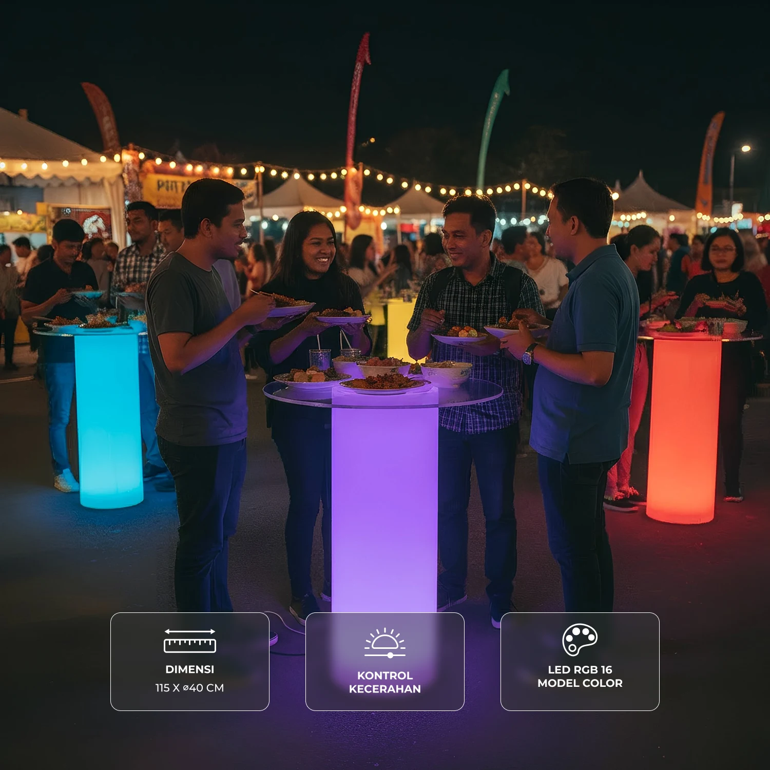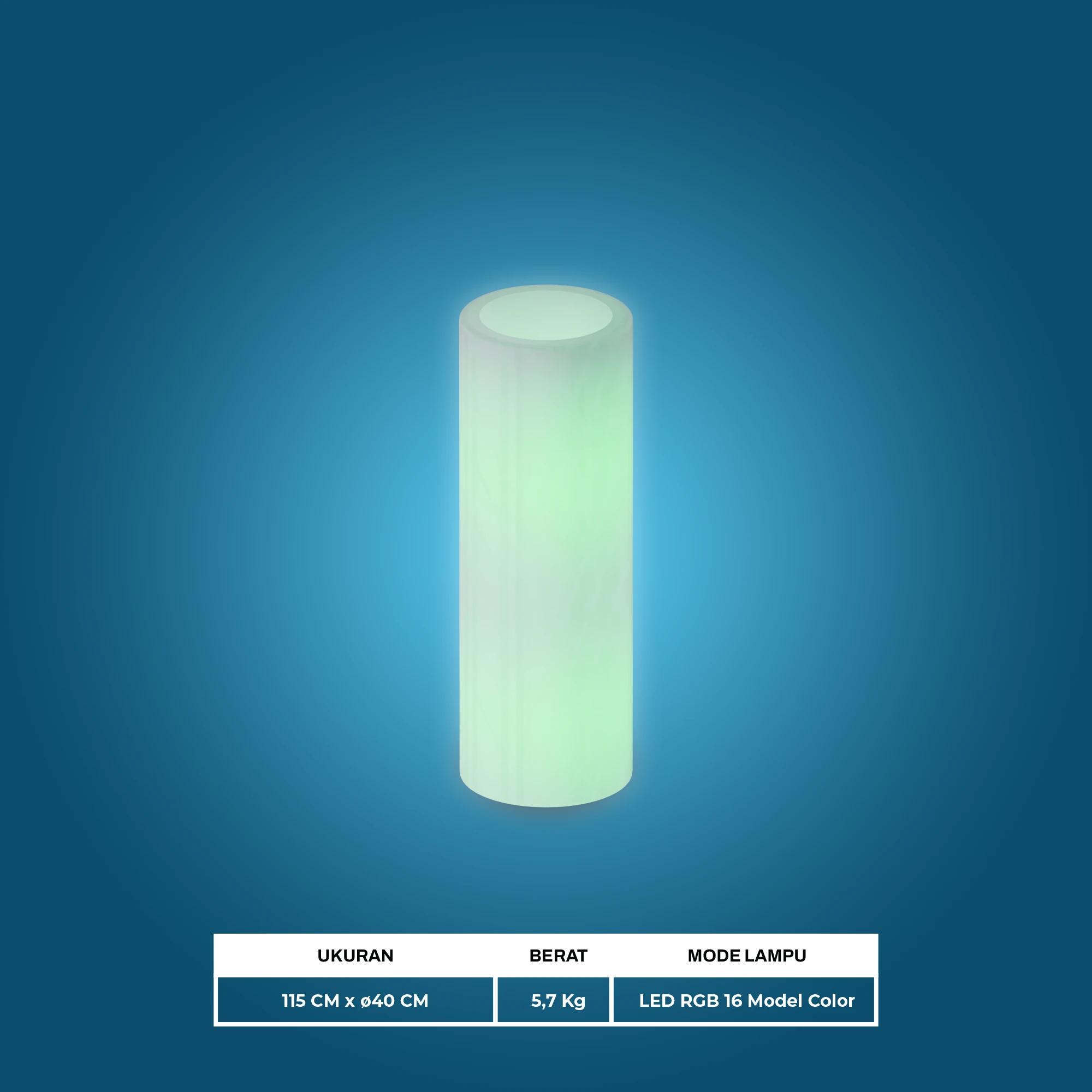 LED Furniture dengan masa pakai baterai hingga 10 jam, Cylinder Pot sangat cocok untuk rumah, bar, kantor, dan pesta pernikahan. Warna yang dibuat termasuk warna statis, memudar melalui berbagai warna, flahsing atau strobe. Unit dilengkapi dengan pengisi daya penuh dengan remote wireless yang mudah digunakan.