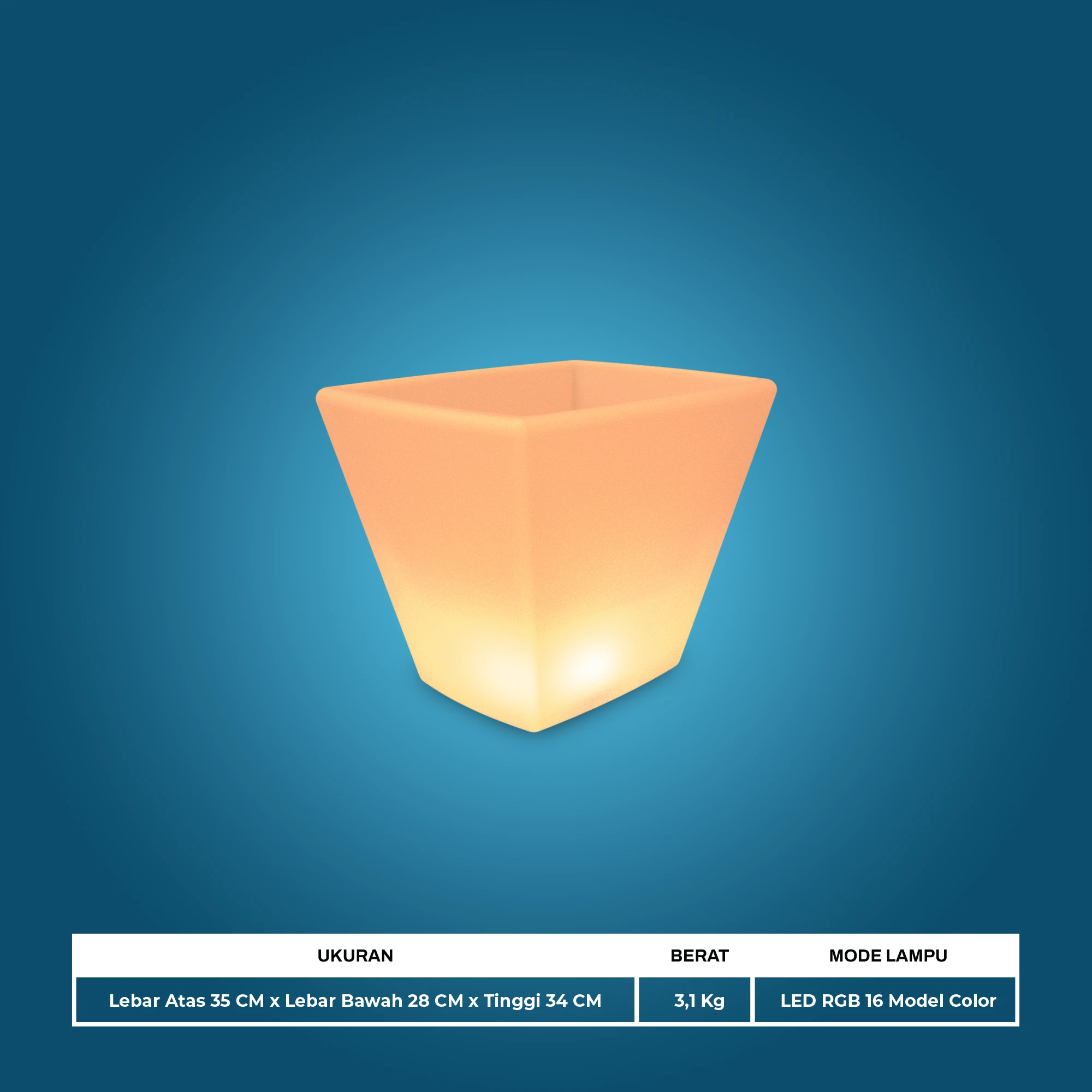 - Warna LED 16 warna yang dapat diubah dengan fungsi memudar, menyala, dan berkedip